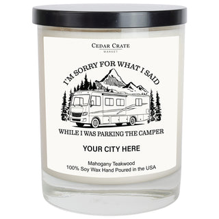 Sorry For What I Said While Parking Motorhome Mountain Name Drop Kraft Candle